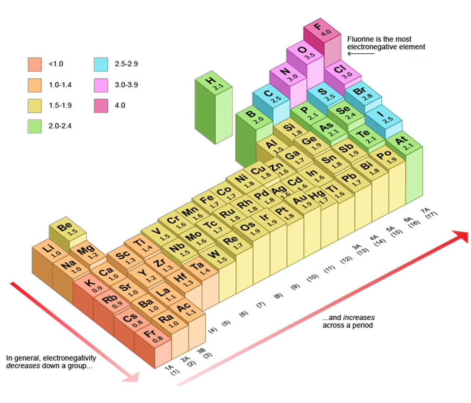 电负性顺序(背诵):F(4.0)> O>NCl>Br>ISC>PH> 类金属 (BSiGe)> 金属