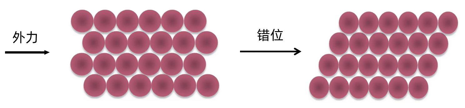 1. 金属的延展性 弥漫在金属原子间的电子气可以起到类似轴承中滚珠之间润滑剂的作用。当金属晶体受到外力作用时,晶体中的各原子层就会发生相对滑动