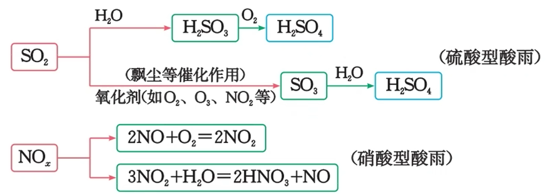 和 以及它们在大气中发生反应后的生成物溶于水形成的